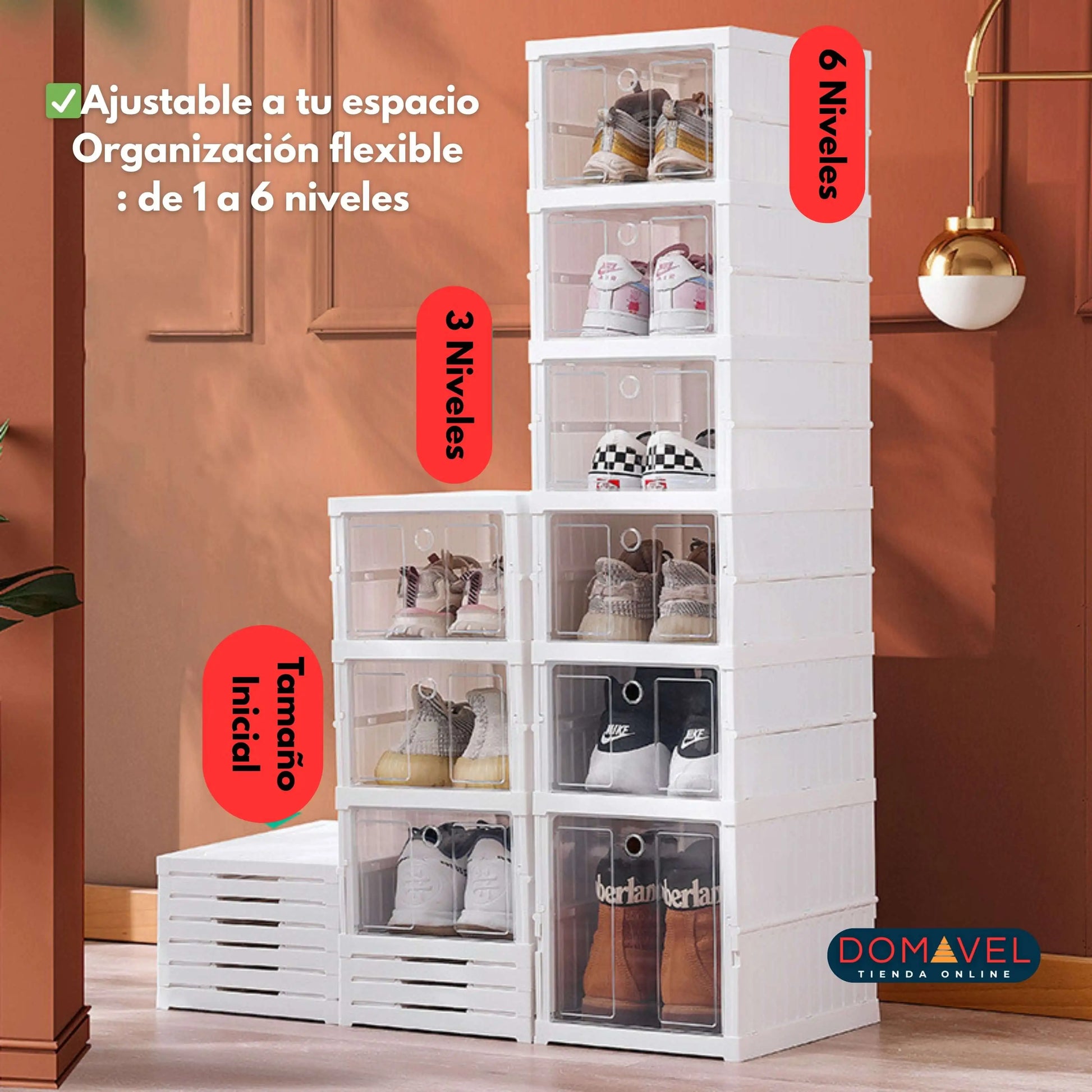 🔹 Con capacidad para 6 pares y diseño plegable, este organizador transforma cualquier espacio en segundos.
