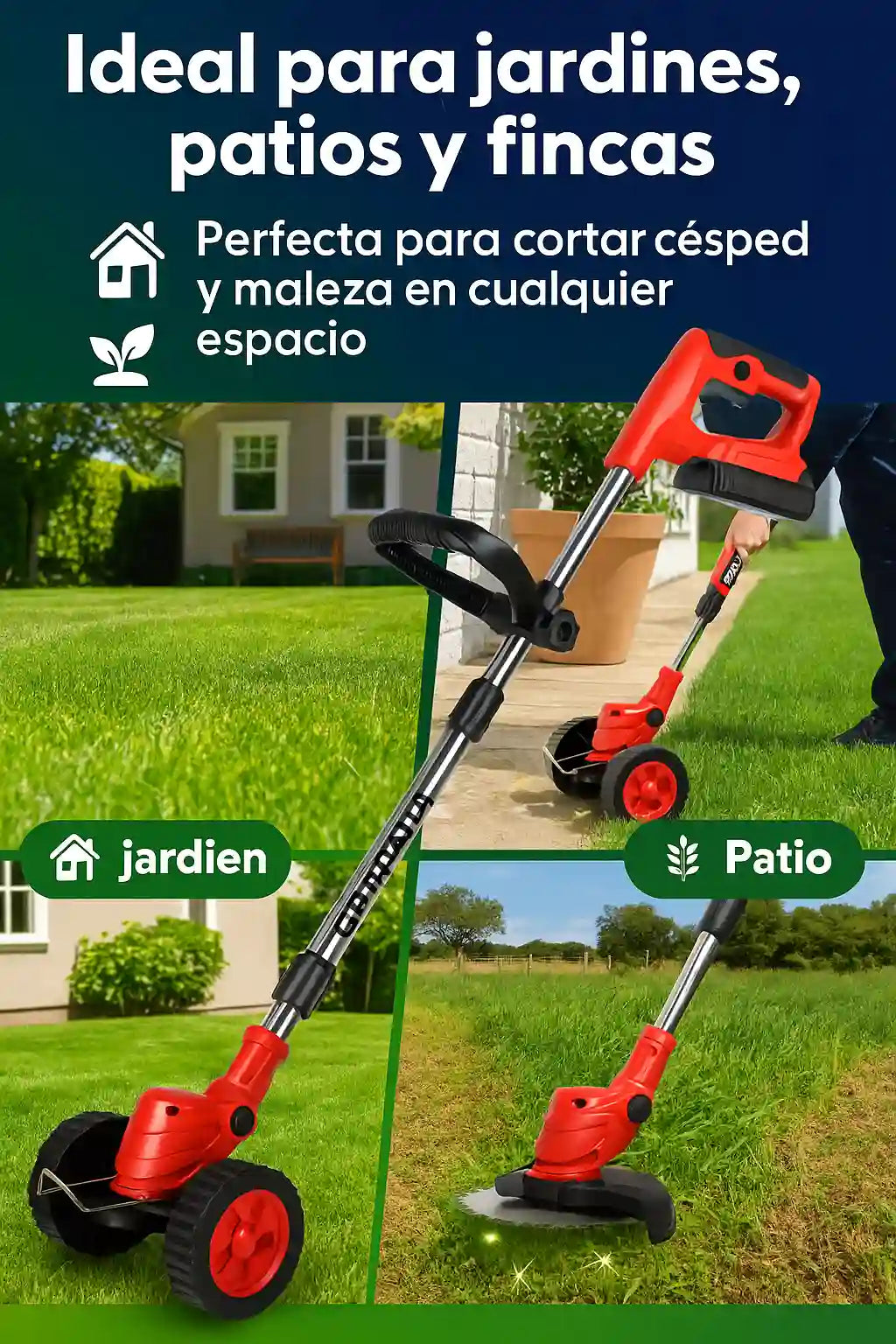 Sí, está diseñada para césped, hierba y maleza ligera a mediana.