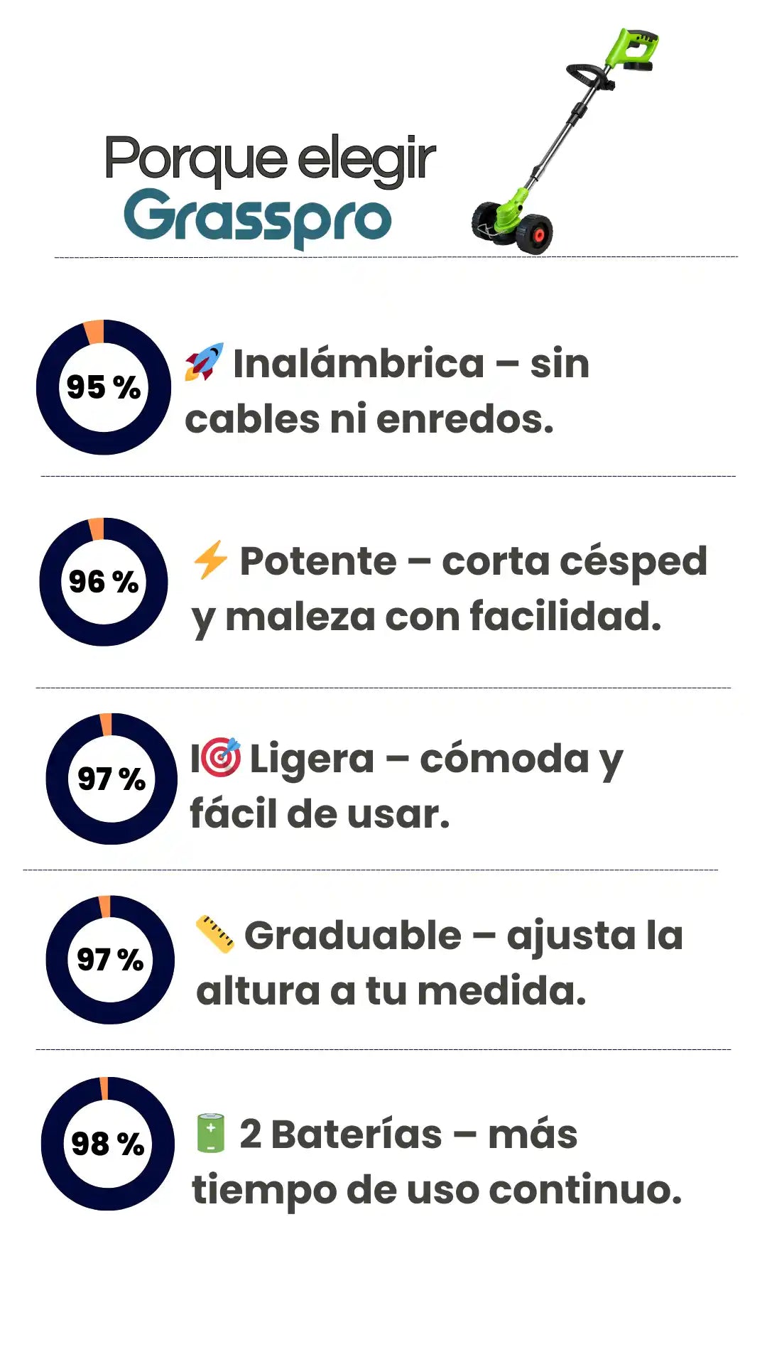 Corta el pasto fácil, rápido y sin cables