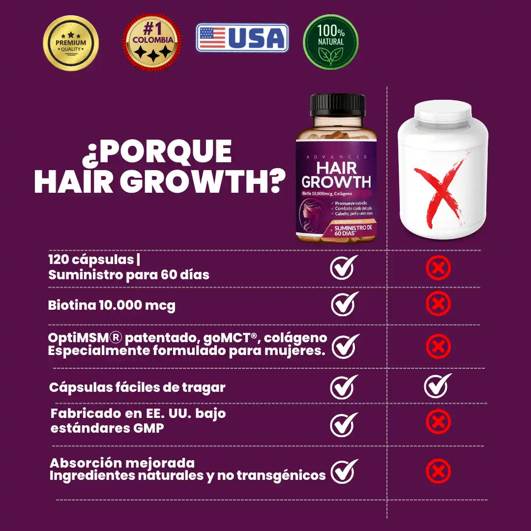 🌿Hair Growth la forma más rápida y deliciosa de darle fuerza a tu cabello, revitalizar tu piel y fortalecer tus uñas —¡sin químicos, sin complicaciones!