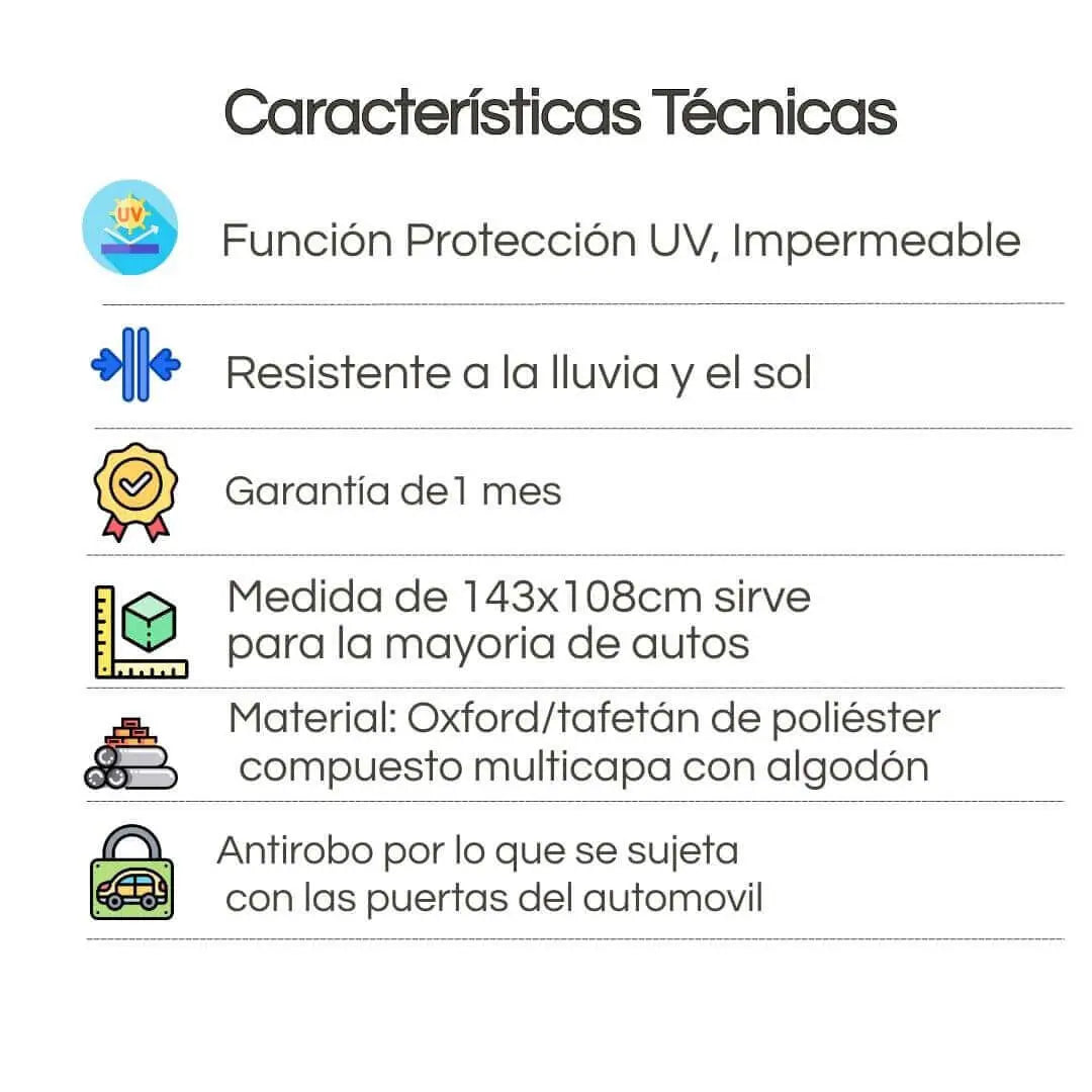 Evita que el sol te queme el volante, agriete tu tablero y convierta tu carro en un horno. Todo con una cubierta que se instala en 10 segundos.